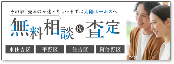 東住吉・平野・住吉・阿倍野の戸建、マンション、土地の売却、買取なら太陽ホームズ